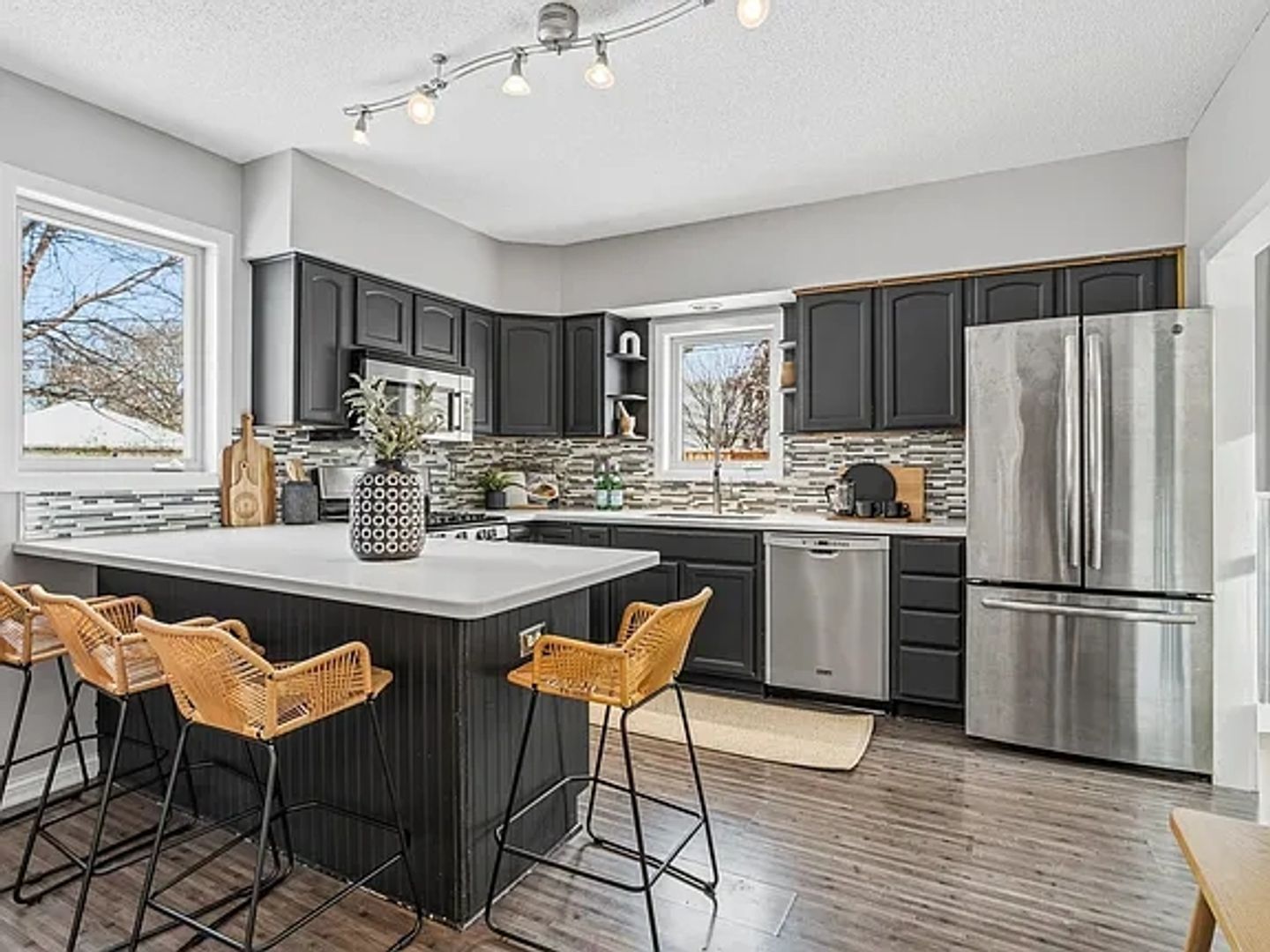 The main level features welcoming front porch, living room, dining room large eat-in kitchen plus bedroom / office. The second floor two bedrooms, full bath and skylight. Fully fenced yard, back deck and really nice, oversized 2 stall garage. Most windows are recently replaced with Renewal by Anderson. The location is amazing! This home is nestled on a quiet, tree lined street in the heart of coveted Cherokee Heights neighborhood. Just minutes to downtown or the airport and steps the forested walking/biking trails along the bluffs of the Mississippi. Walk to restaurants, coffee shop and grocery. Schedule a showing today and make this your home!